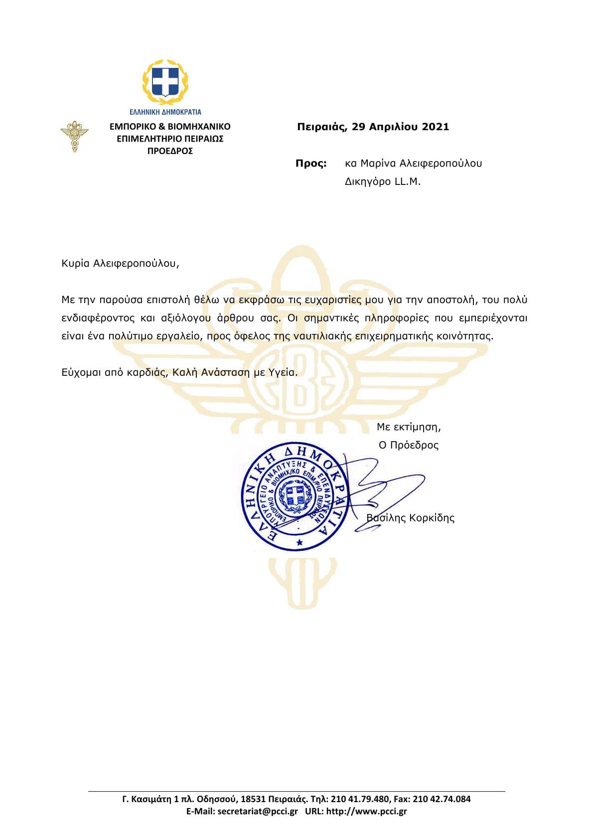 -Αναπληρωματικό Μέλος Δ.Σ. της Ένωσης για τη Ναυτική Διαιτησία στον Πειραιά.